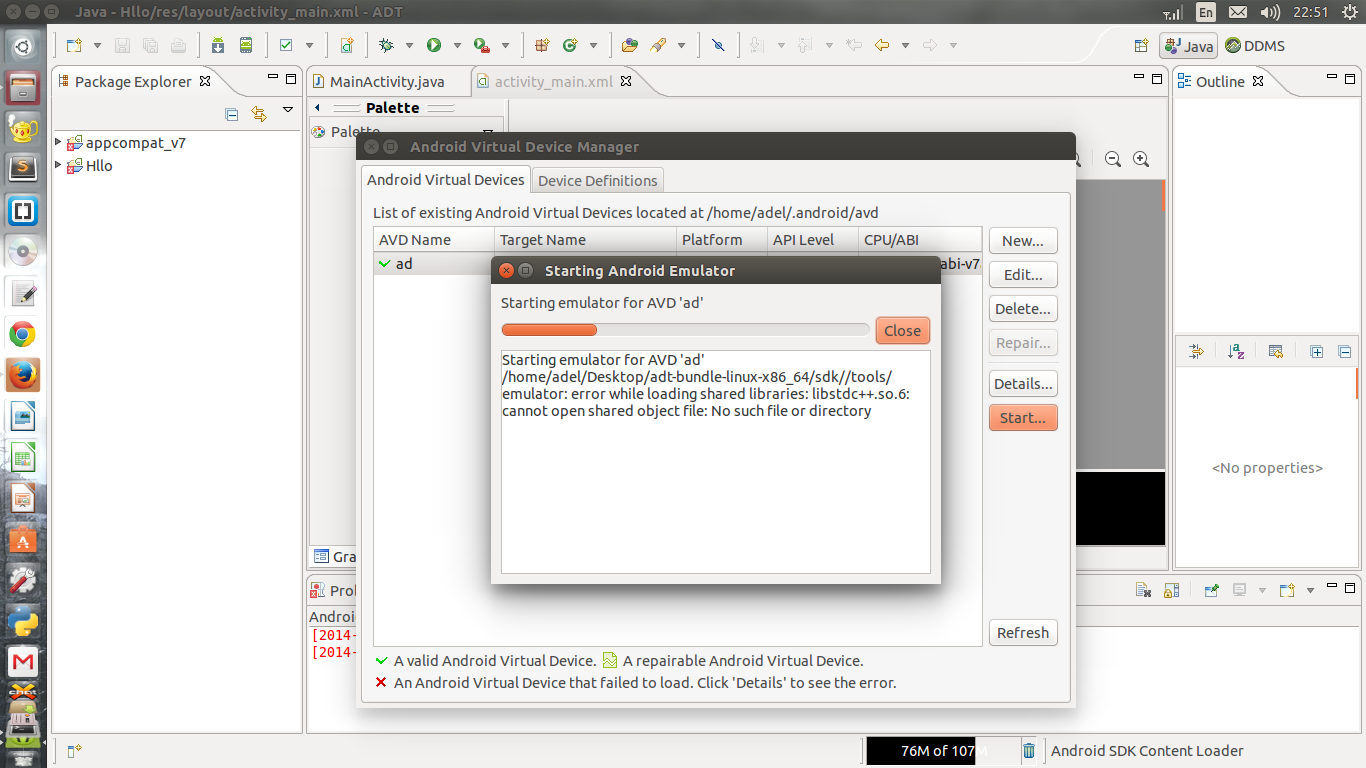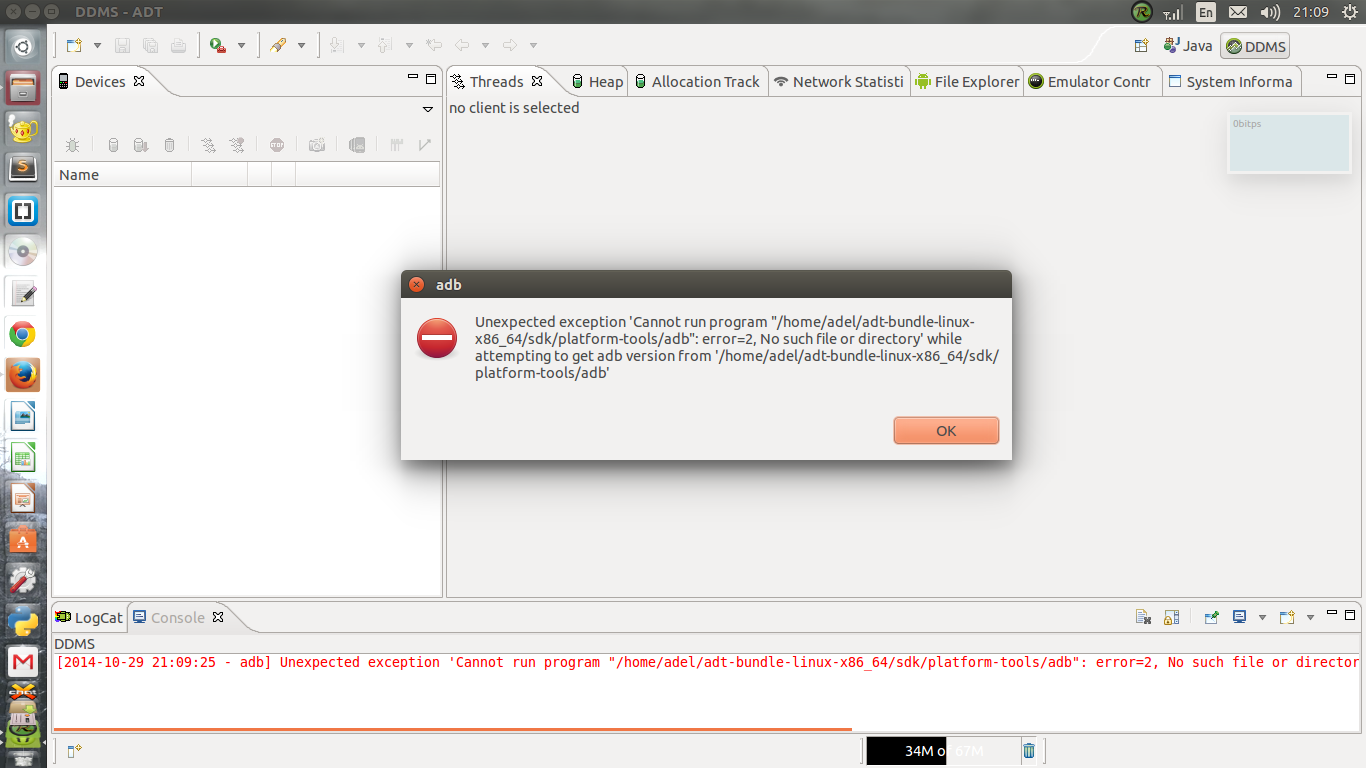 تو پست قبلی اینه دانلود ابزار برنامه اندروید وجاوا رو گذاشتم،حالا adtدانلود واز حالت فشرده خارج میکنیم اگه اجرا شد ومشکلی نداشت که هیچ ولی اگه مشکلات زیر واستون پیش امد با زدن چندتا کد تو ترمینال و نصب چندتا کتابخونه حل میشه:خطای اول: